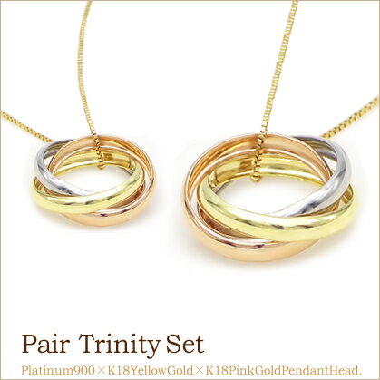 あす楽【大特価】プラチナ pt900×K18イエローゴールド×K18ピンクゴールド 『Trinity』3色リングチャームペンダント ヘッドセット ペアジュエリー メンズ 男女兼用 トリニティ スリーカラー 3連 3カラー 【送料無料】【楽ギフ_包装】【楽ギフ_メッセ】